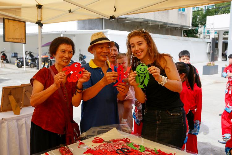 浙江省温岭市:外国游客沉浸在中国传统文化中